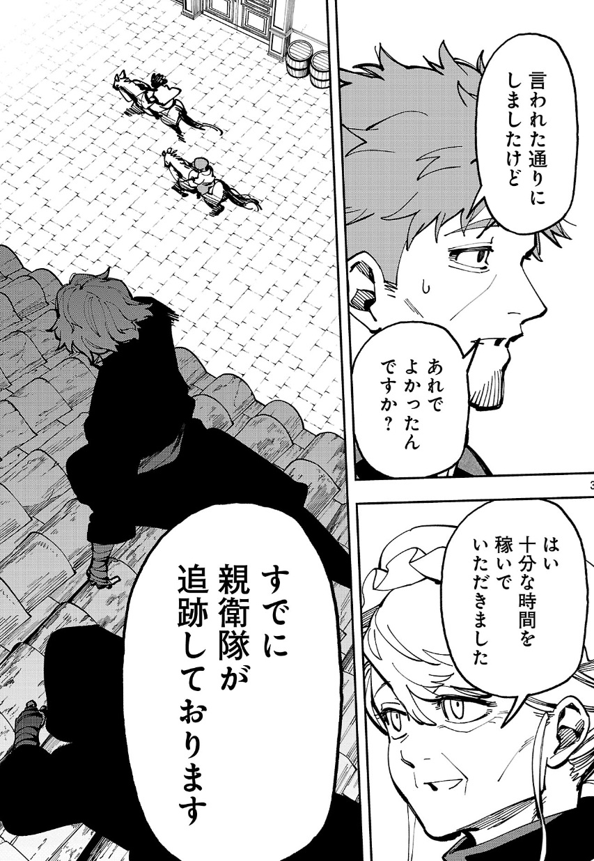 片田舎のおっさん、剣聖になるの38話ではヒンニスの仲間が魔法でボヤを起こし、その混乱に乗じてヒンニスは逃亡します。