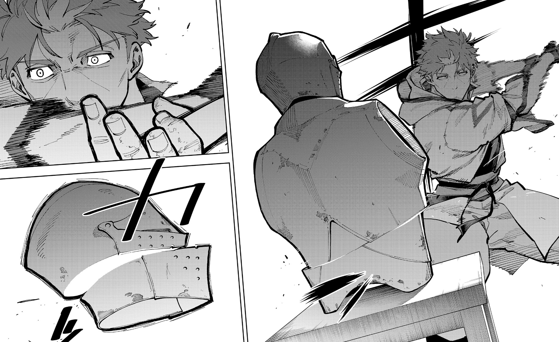 何よりヤバイのが、ベリルの剣が速すぎて斬った甲冑が離れずにその場にとどまっていることですね。