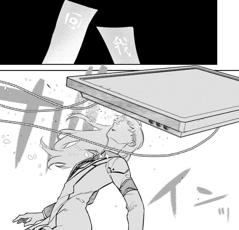 ゲールは「我思わずゆえに我無し」を発動する直前に、足元から拾い上げたモニターをぶん投げ・・