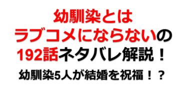 この記事では幼馴染とはラブコメにならないの第192話についてネタバレ解説します。第191話ではしお達が捕獲され、地華がしお達と直接会おうとしていました。第192話ではどんな展開になるのでしょう?※この記事は幼馴染とはラブコメにならないのネタ...