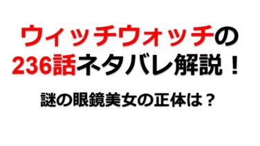 この記事ではウィッチウォッチの236話についてネタバレ解説します。235話ではカンシが一般人の女の子と遭遇しました。236話ではどんな展開になるのでしょう?※この記事はウィッチウォッチのネタバレを含みます下記の関連記事及び目次の後から記事の...